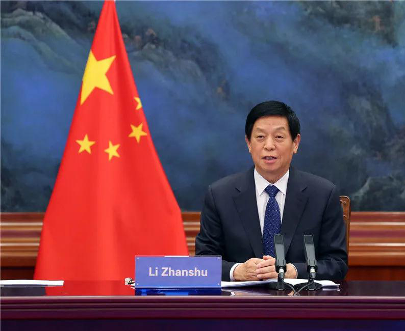 全国人大常委会委员长栗战书17日在北京人民大会堂以视频方式同越南国会主席王庭惠举行会谈。