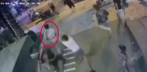 黑帮老大“大道”君(红圈)惨遭另一团伙埋伏围殴追砍。(图源:监控视频截图)