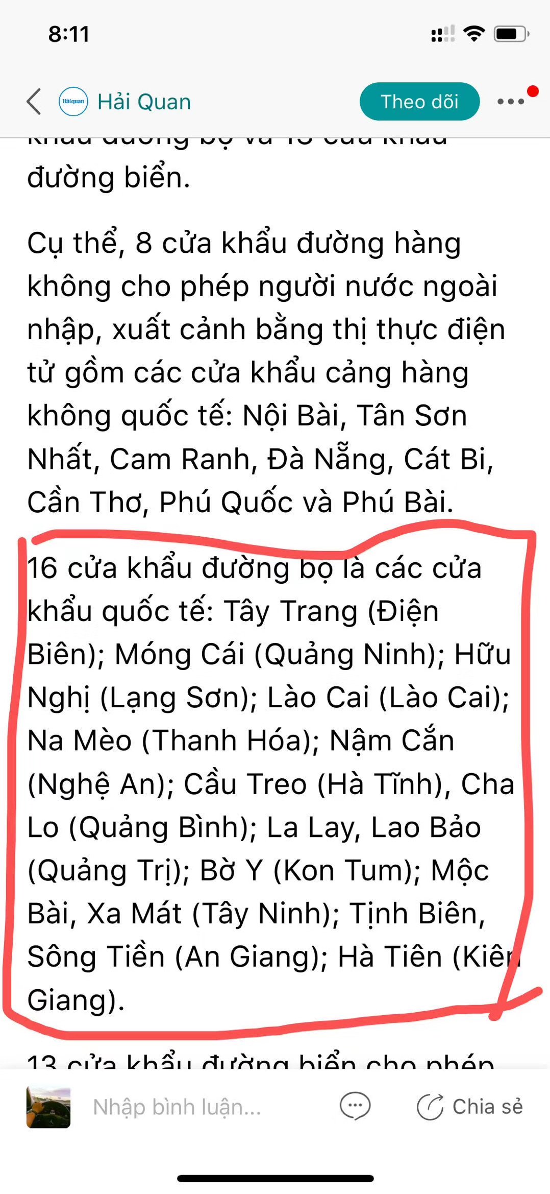 同时,越南媒体还公开了允许出入境人员使用电子签证的国际口岸,其中包括8个空港口岸、16个陆路口岸和13个海运口岸。